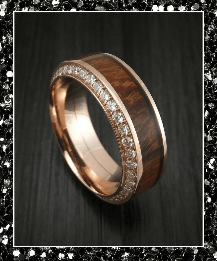 Yes. You can personalize width, finish, inlay metals (like 14k rose or yellow gold), and even interior sleeves made from hardwood or other materials.